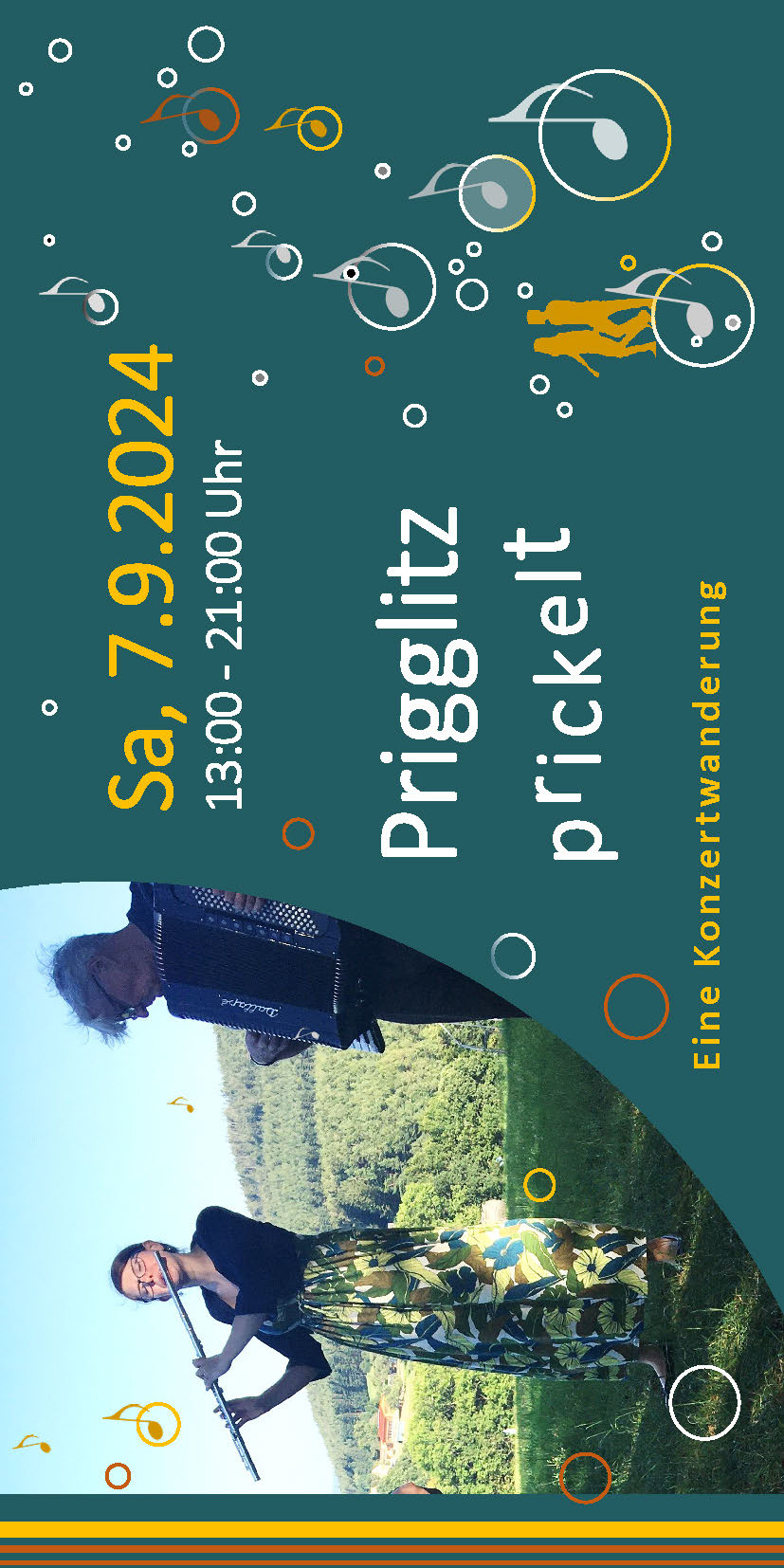 Auf einem gemeinsamen Spaziergang erklingt Musik an unterschiedlichen Plätzen. Bei kleinen Konzerten werden musikalisch Geschichten erzählt und Brücken von der Volksmusik zu aktuellen Musikformen aus Nah & Fern geschlagen.